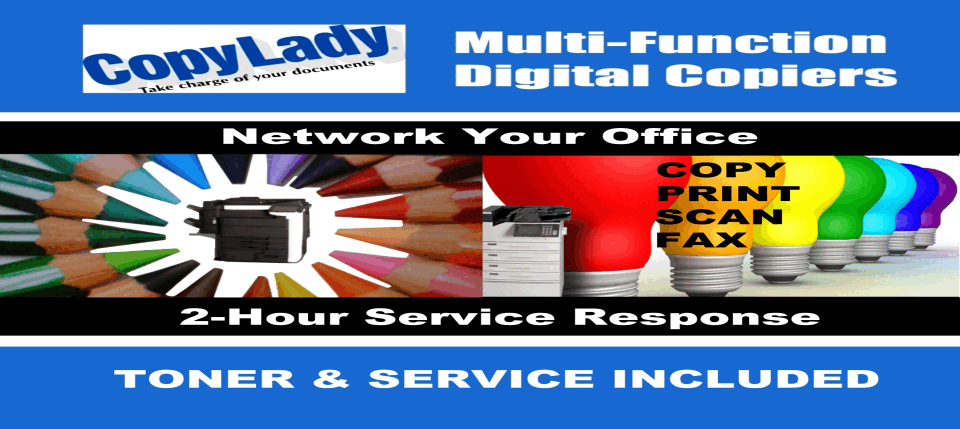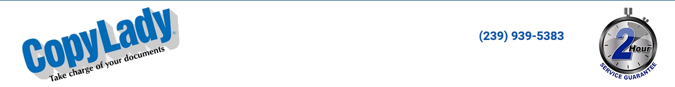 CopyLady: Proudly serving Sanibel, Captiva Island and SouthWest Florida since 2002!It's time to take charge of your documents!At CopyLady, We carry Multifunction Printers from major brands such as Epson, Kyocera, and KIP.We also service all major printer and copier brands! HP, Brother, Ricoh, Xerox, Canon, We can fix them all!Need a toner, ink or other component for an existing machine? Can't find it anywhere else? We can help you!With CopyLady, you won't just manage documents, you'll take charge of your documents!Service so fast, you'd think we popped straight out of your phone!Tired of downtime? Sick of paper jams? Tired of being stuck without a printer while your current service provider responds? Yeah, we know the feeling.That's why we have the CopyLady 2-Hour guarantee! You're on a beautiful island! You should be on the beach, toes in the sand, drink in hand,NOT waiting to get your equipment repaired! Let CopyLady keep your office running, so you can sit back, relax and enjoy life!Our team of highly trained copier technicians are always ready to help when the call comes in, You can also get quick assistance fromour help desk! Do you have a question about something on your copier or printer? Need some assistance with a feature? Just give CopyLadya call, and our highly knowledgeable help desk technicians can assist you within minutes! Hey, Pass the suntan lotion please!. The cost of toners is insane today......wait........Did you say FREE???YES! Paying for toners for your copier or printer is so out of style! Why would you want to even do that?? We got you covered! Your CopyLady Service agreementincludes toners! What's better, is thanks to our revolutionary Toner Replenishment System (TRS), You'll NEVER have to call and order toners! We'll handle it all for you!Once we see you are low on a toner, One of our technicians will bring a fresh one out to you! We carry a full selection of toners and inks in our Fort Myerswarehouse, No need to wait for it to come from some other state! And yes, It's FREE!!! Take what you would have spent on toners, and go get a nice tropical drink, or anepic burger! After all, Sanibel is well known for it's unique restaraunts!For those really BIG IDEAS........You'll want a BIG PRINTER to bring them to life!Blueprints? Posters? Banners? Covering your office walls with beautiful ocean views? CopyLady has you covered with our line of high quality plotters!With sizes up to 44 inches, Let your creativity soar! Razor sharp Black & White, and Colors so real, you'd swear you moved your desk onto the beach! (Minus the sand!)Ready to spend more time on the beach and less time worrying about your copiers and printers? Call us at 239-939-5383!Don't settle for the least, Go for the best! Like what you see? Call now or hit the link below to check out our specials!Call CopyLady Today at 239-939-5383Serving Sanibel, Captiva Island, and all of Southwest Florida.